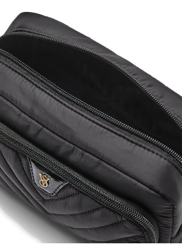 Štýl so sťahovaním sa spája s dokonalou organizáciou. Uchovajte si svoje obľúbené kozmetické produkty prehľadne a bezpečne, nech cestujete kamkoľvek, v tejto priestrannej cestovnej kozmetickej taške. Vyznačuje sa klasickým prešívaným vzorom do „V“ a nylonovými detailmi.